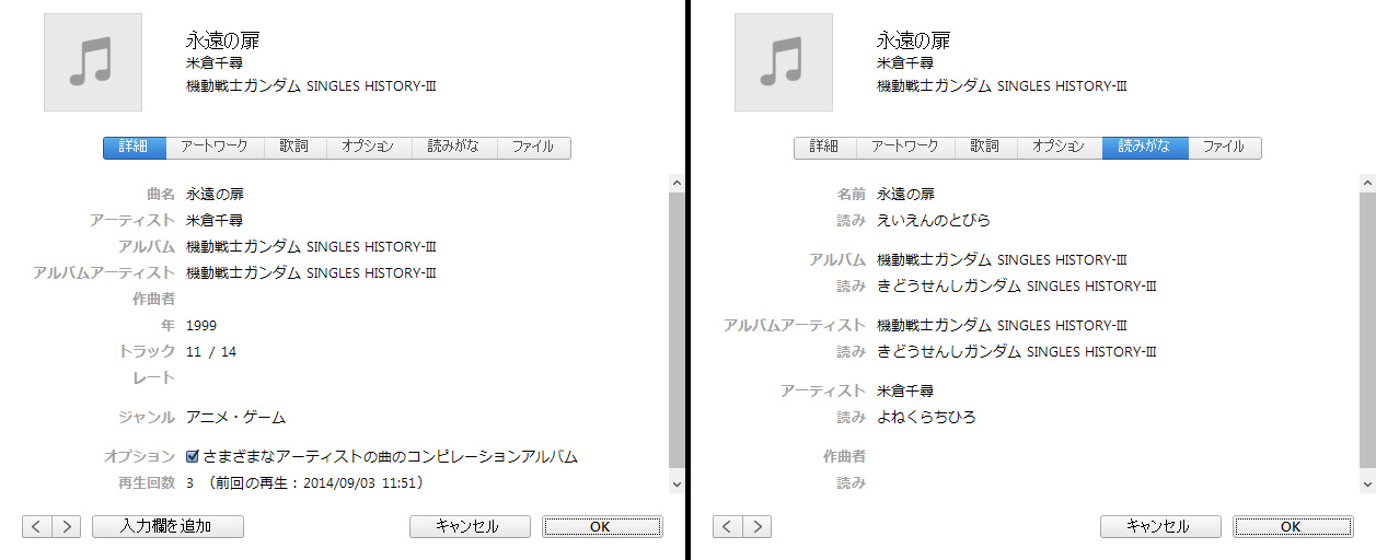こちらがiPodからアルバム名検索をしてもリストに表示されていた方の曲です