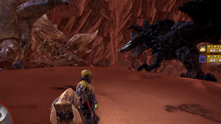 徐々にディアブロス亜種を寝床に追い詰め、楽しくなって夢中になって削ったところで
