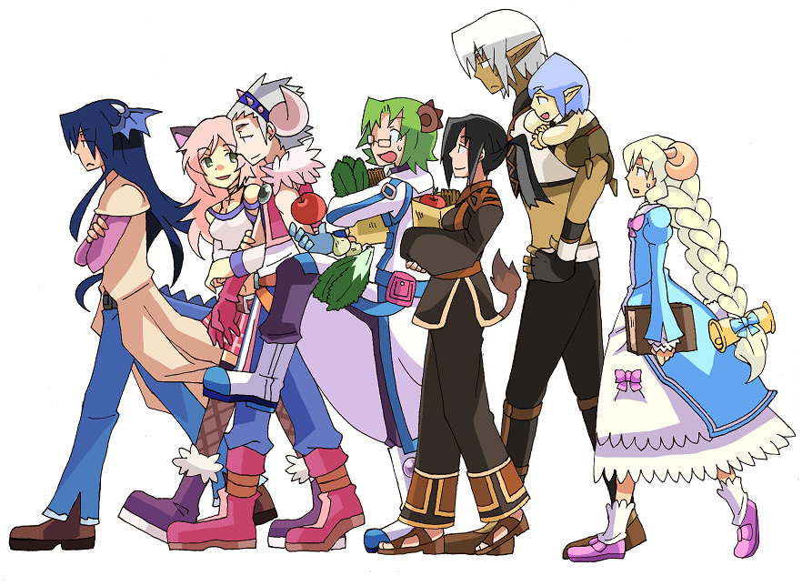 左からサティ・アイギス・叢雲・ハサハ・黒木・ロア・弟のキャラ・羊
