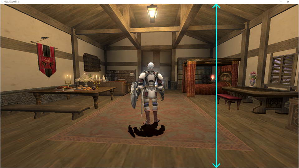 この場合、FF11のスクリーンサイズ設定をフルスクリーンモードのサイズにするのではなく、タイトルバーなどのウィンドウ枠のサイズを差し引いたやや小さめのサイズに設定してやれば歪めずに表示出来そうです。